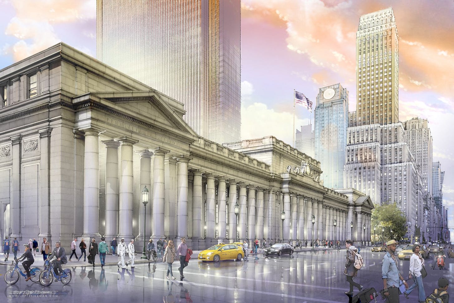 This puts the railroads in a position where they can extract all kinds of concessions needed to improve Penn Station. They could force MSG to stop blocking the streets with trucks. They could take the taxiway mid-block between Seventh and Eighth Avenue to create new entryways with a skylight to brighten the station below. They could even demolish the Theater at Madison Square Garden to make room for a grander entrance and street-level mezzanine along Eighth Avenue. All of these have been proposed.